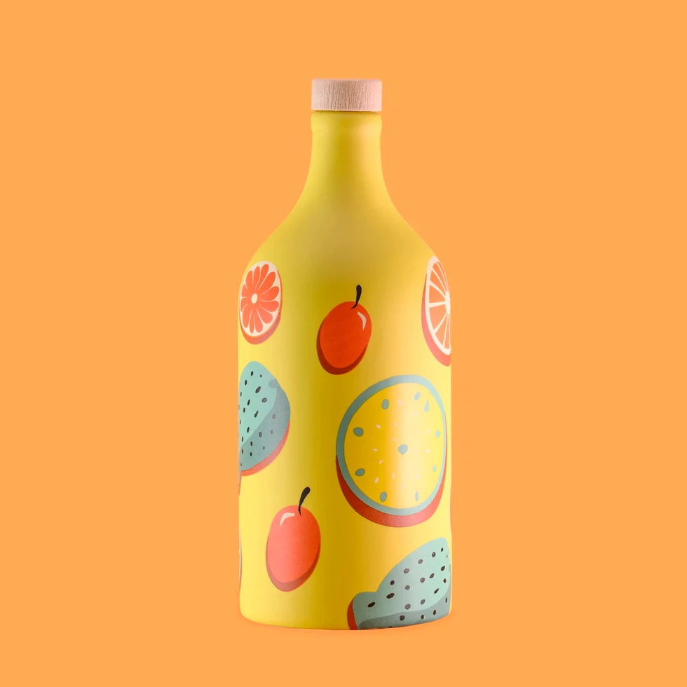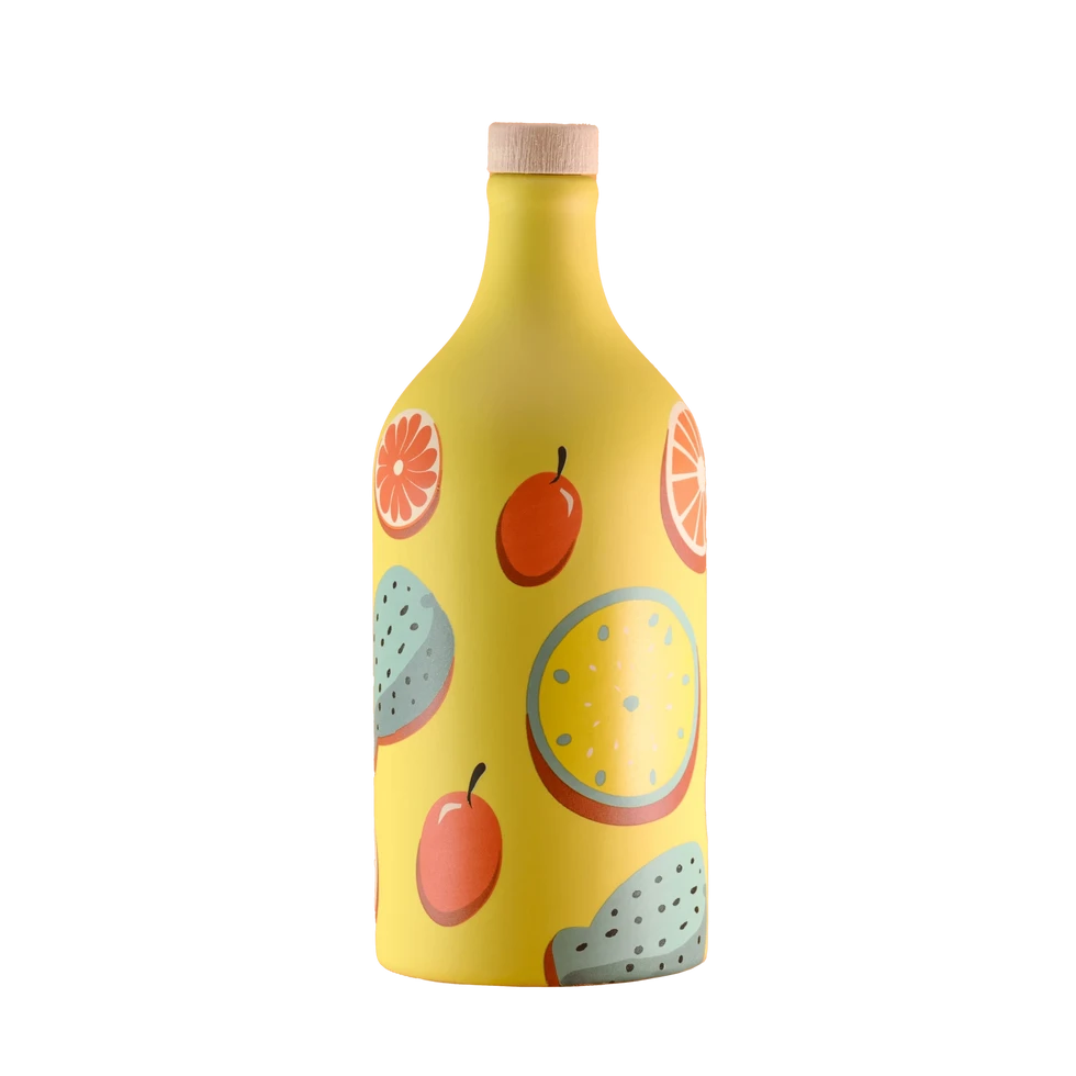 Keramikkflasken i Mediterranean Line er Muraglia sin mest lekne serie – her med friske, middelhavsinspirerte illustrasjoner og deres Intense Fruity ekstra jomfruolje. Oljen er laget på 100% Coratina-oliven og har en intens grønn–gul farge og en tydelig, krydret profil med toner av dill, fennikel, artiskokk, pepper og høy. Strukturen er kraftig, vegetal og lang i smaken – en olje som løfter både enkle og mer gjennomarbeidede retter.