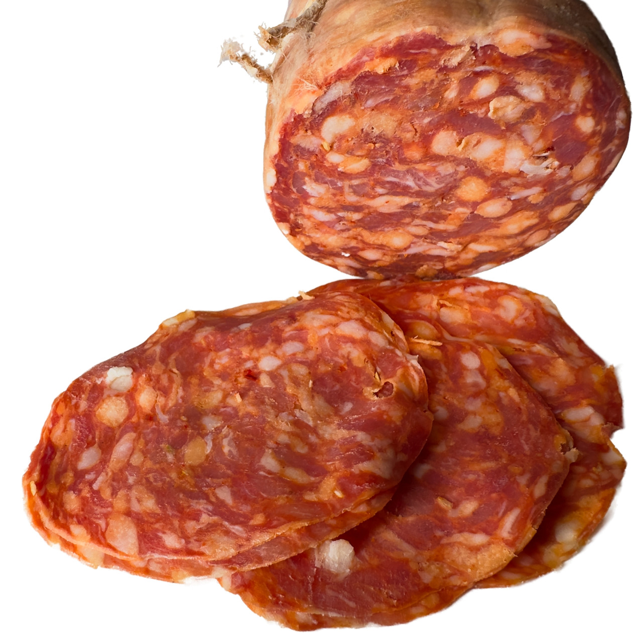 OBS: Hele salamien veier ca. 2,5 kg. Dersom du velger en mindre mengde, vil den bli skivet og vakuumpakket av pizzashop.no.