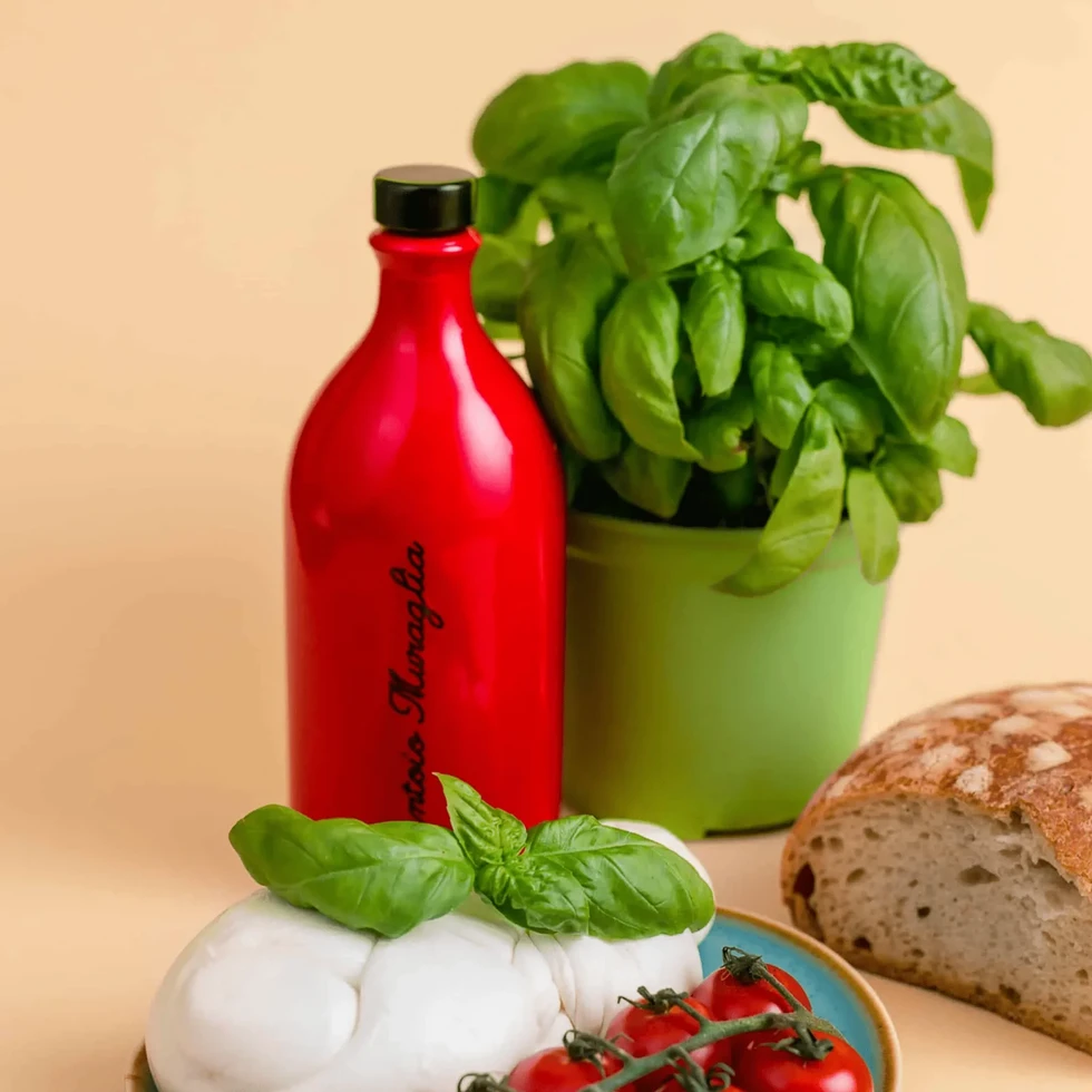 Shining Red fra Muraglias Coolors-serie – en gave som både ser rålekker ut og smaker fantastisk. Inni flasken finner du Intense Fruity, laget på 100% Coratina-oliven. Oljen har en intens grønn-gul farge og en lang, krydret smak med preg av dill, fennikel, artiskokk, pepper og høy.